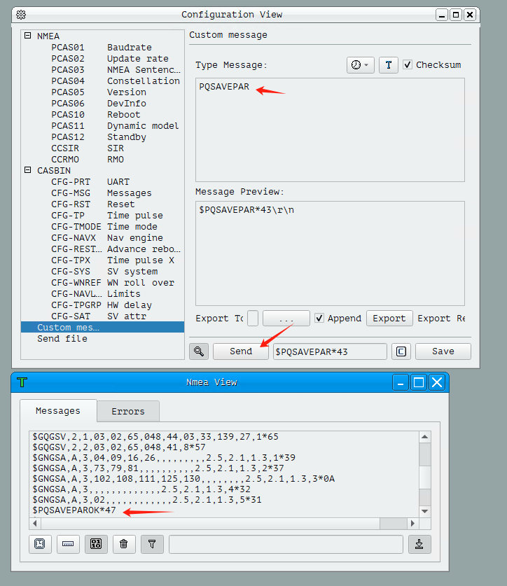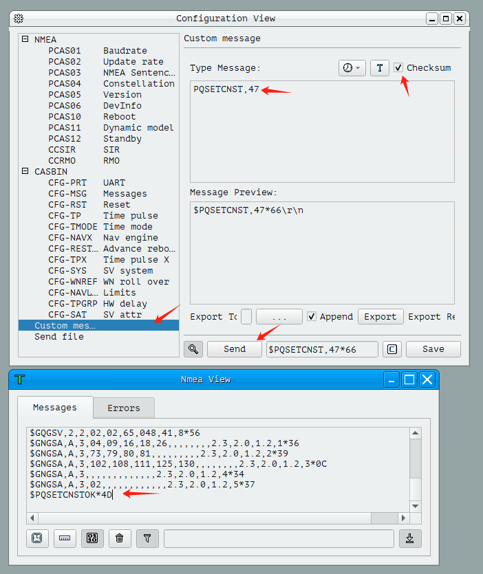 Note: After the command is successfully sent, the NMEA View window will return “$PQSETCNSTOK*4D”, indicating that the command was accepted.